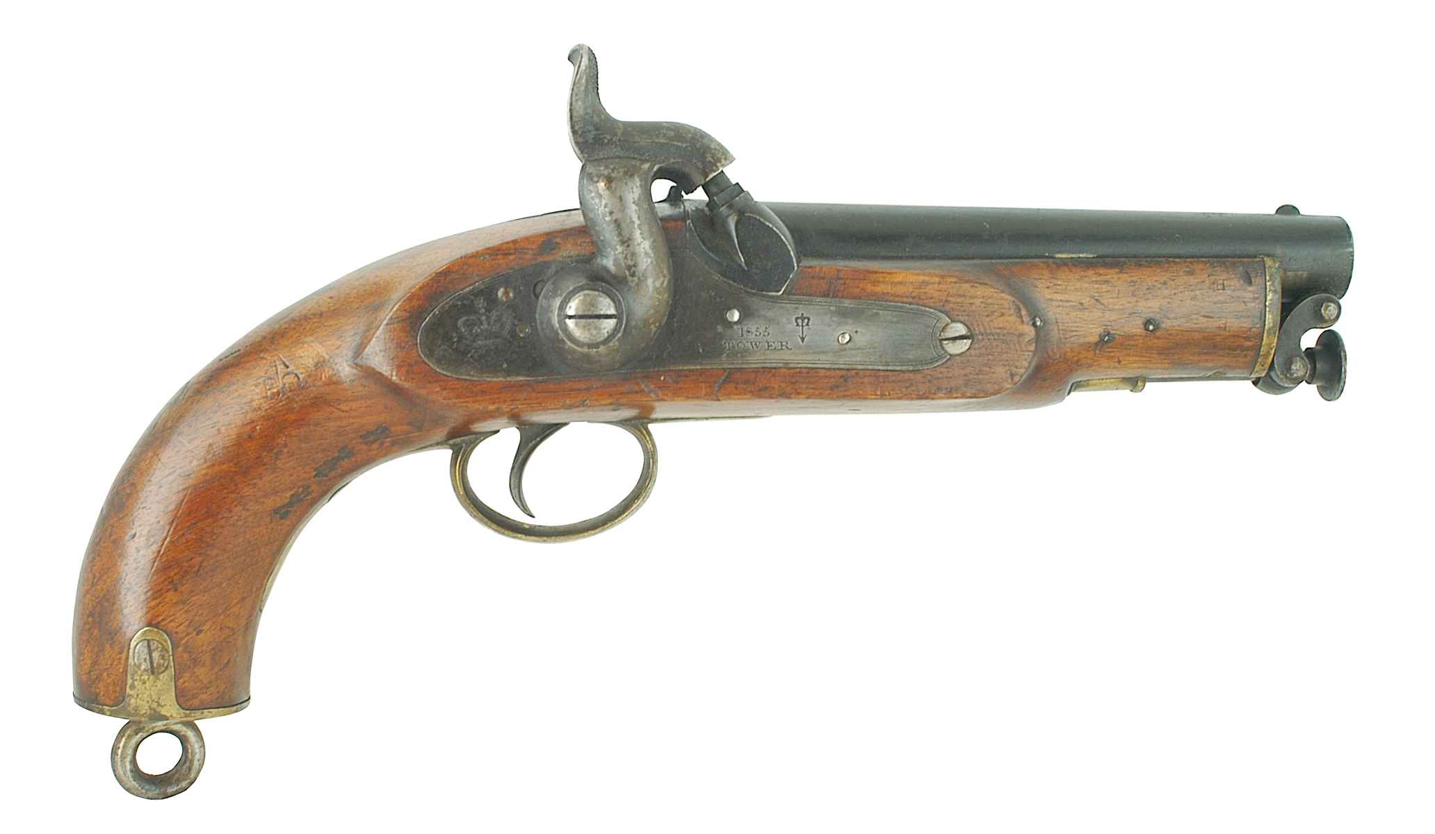 Audemars Piguet Replica Tower Percussion Naval / Coast Guard Pistol .58 caliber with a round iron smoothbore 6" barrel. The nearly full length walnut stock extends to a swivel ramrod at the muzzle. The lockplate is typical marked with a "(crown)/ VR" be...