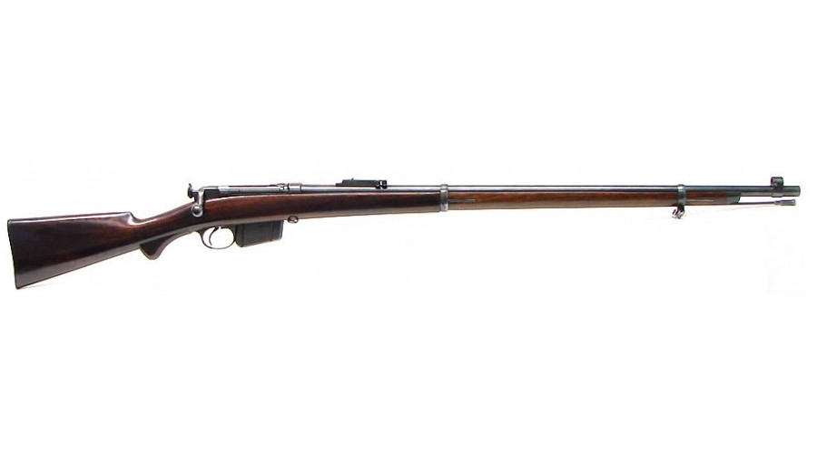 The Lee Model 1895 was a straight-pull, cam-action magazine rifle adopted in limited numbers by the U.S. Navy and Marine Corps in 1895 as a first-line infantry rifle. The Navy`s official designation for the Lee Straight-Pull rifle was the "Lee Rifle, Model of 1895, caliber 6-mm" but the w...